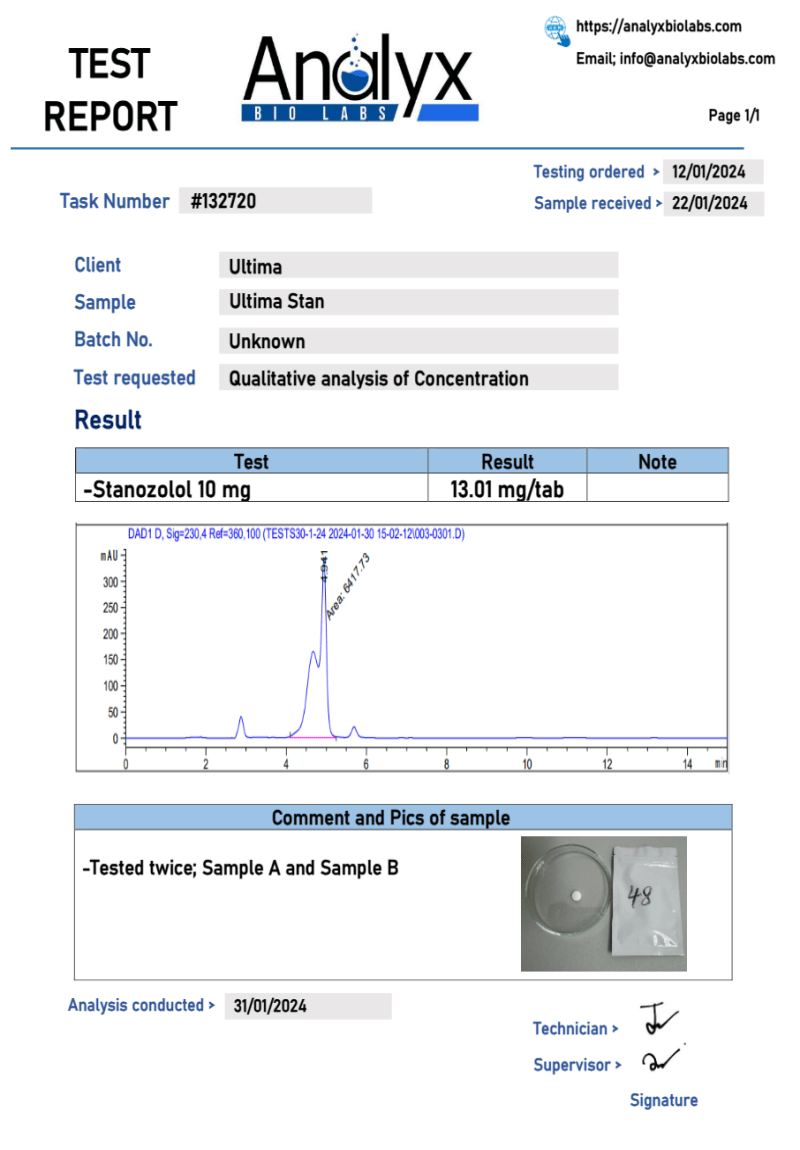 Before you buy Ultima-Stan, remember that the use of steroids by competing athletes is not possible, because it can be detected by disqualification Commission, within one year after the last cycle. The duration of action of the active susbtance is on average up to 8 hours.